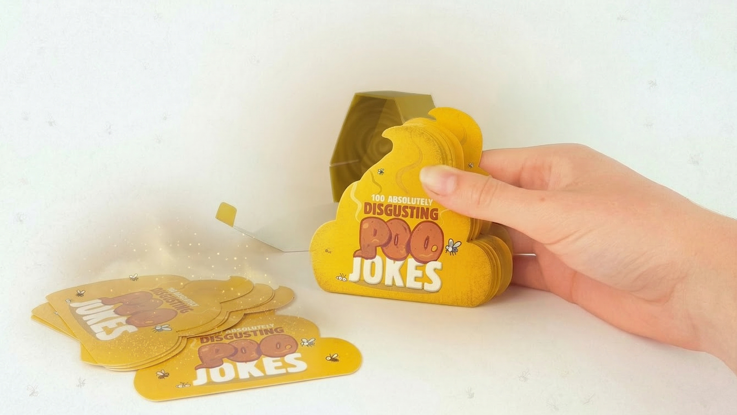 - Jokes printed on fun poo shaped cards