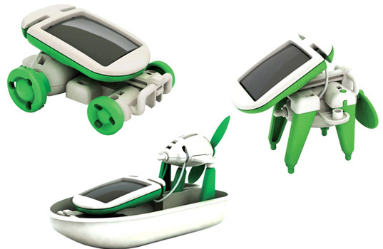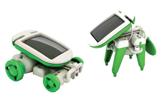 The 6 in 1 Solar Robot Kit teaches children the benefits of solar energy while they create a toy that is both fun to play with and requires no batteries.
