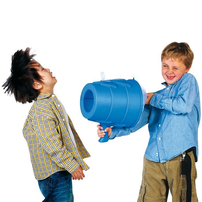 Will you catch them off guard, or simply blow them away? At approximately 28cm in diameter, your conical air blasters work like slingshots, but instead of projecting objects, they shoot intense puffs of air with no batteries or electricity (just a bit of upper body strength)!