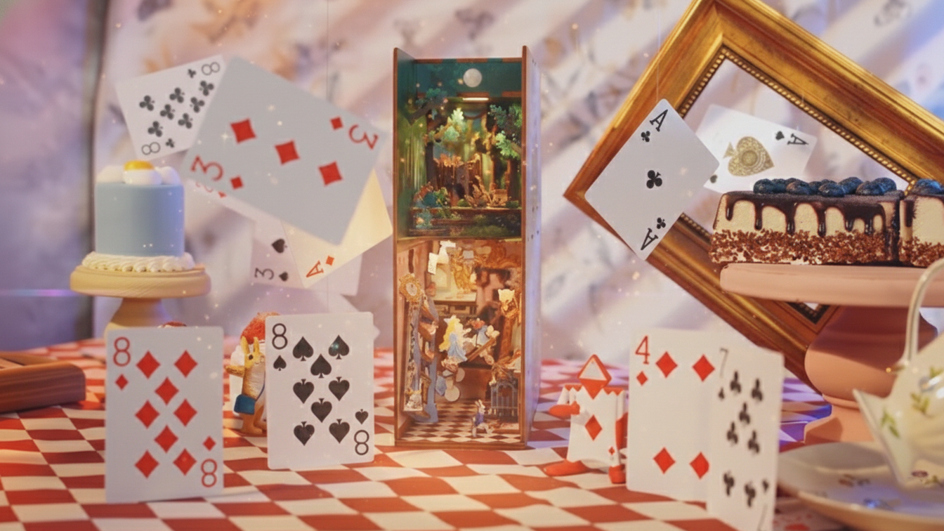 The Alice in Wonderland 3D Wooden Puzzle DIY Book Nook Kit lets you build a detailed scene inspired by the classic tale!