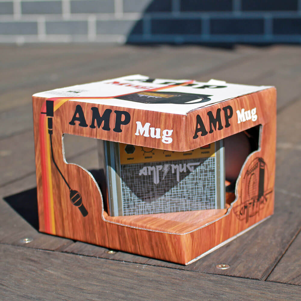 Kick back, relax and enjoy a hot beverage with this small yet powerful square-shaped Amp Mug.