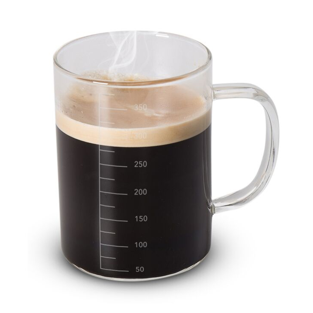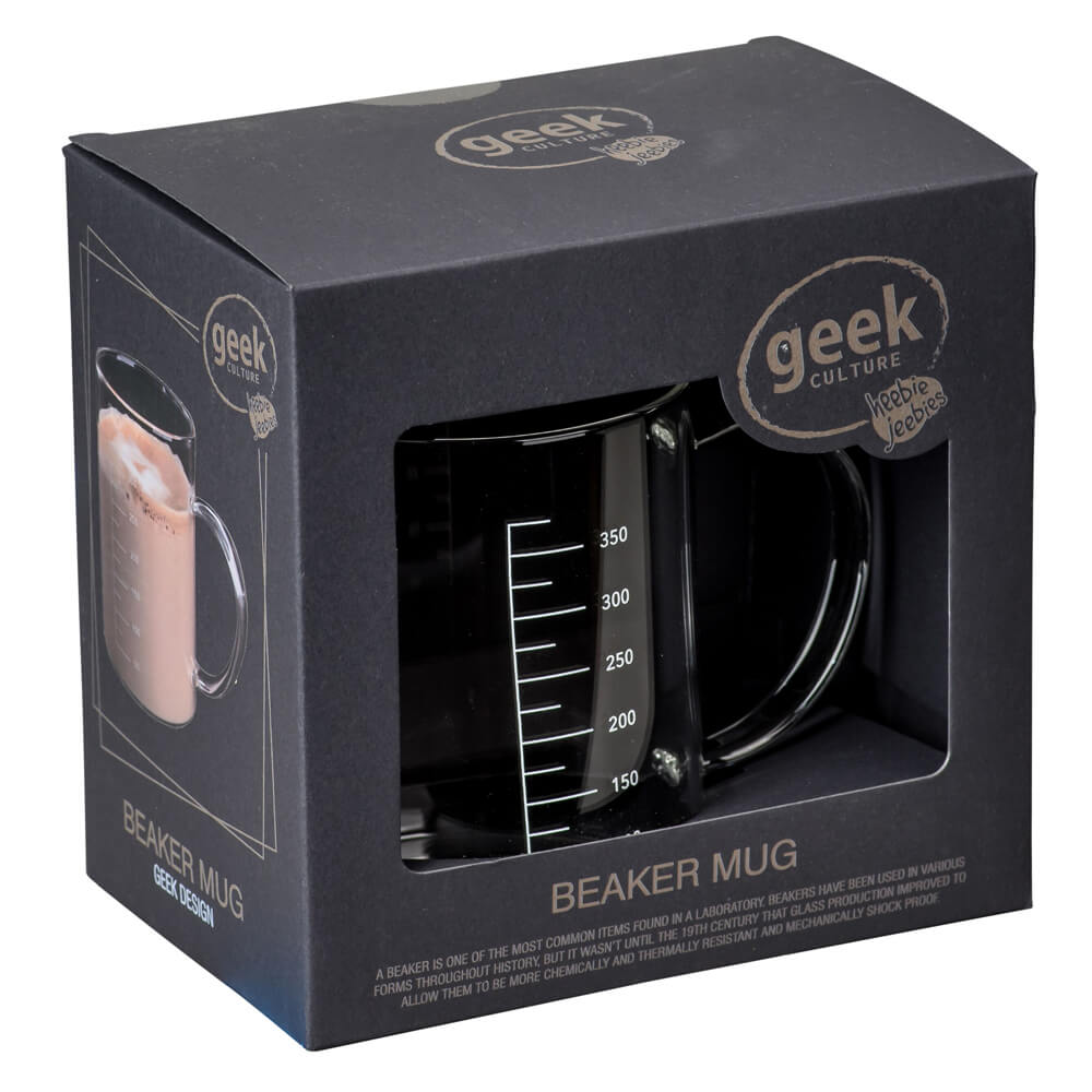 Your quality Beaker Mug is made from durable, shock proof borosilicate glass, just like you'd find in a real laboratory! It even comes with graduated marks on the side up to 350ml in capactiy, so there's no excuse for not knowing how much coffee you consume on a daily basis!