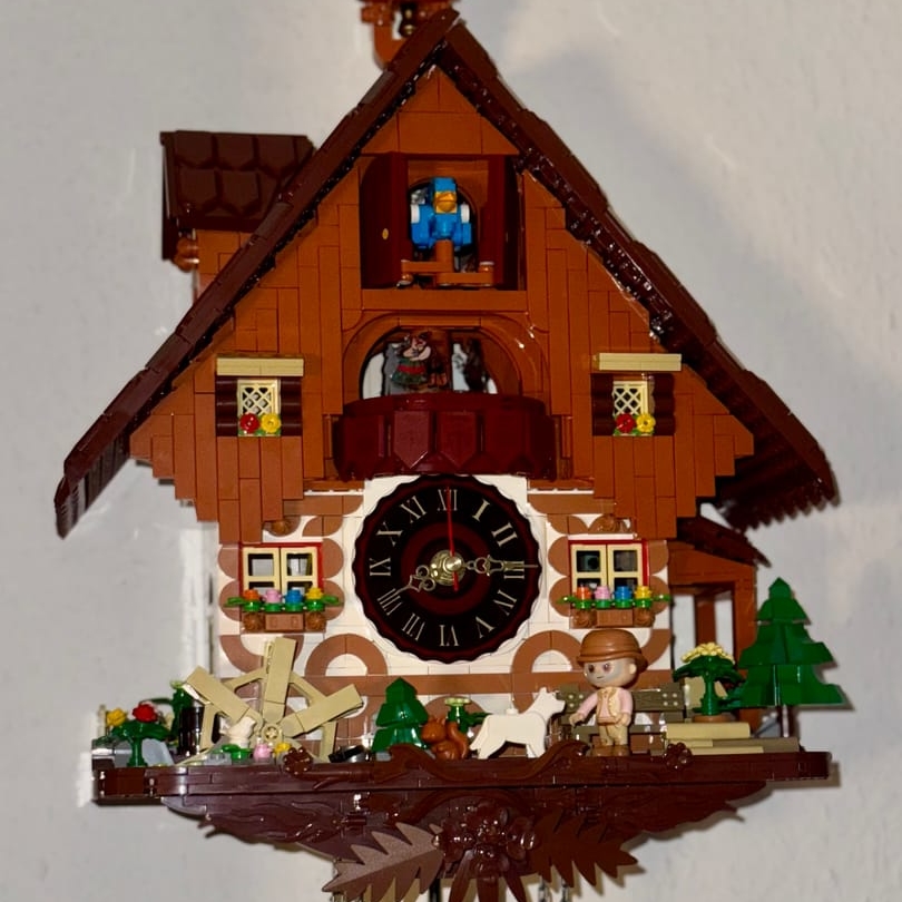 By: Henning on 23 OctoberA real nice set with a few caveats From a design perspective the Cuckoo Clock checks every box on the list of what you can expect from a Pantasy set. Beautifully designed, great pieces with optimal clutch power and it even has a working clock and motor for the mechanics. This makes it one of a kind and you can even choose if you want to sit it on a desktop or hang it to the wall - accessories for both options are included. That being said there is a few things to mention: first of all, due to the nature of this set, there is no link between the clock and the cuckoo mechanic. The clock is a standard wall clock module running on a single AA battery, while the motor for the mechanic is powered by a a box with a USB-C connector and a switch to control it. It does not have a battery on its own so you'll need to hook up a power source via the included USB cable. Although the battery for the clock *can* be changed, it is a bit of a hassle as the clock module is tightly integrated into the build - which makes it look very nice but may complicate maintenance. You'll probably have to at least partly disassemble the set in order to change the battery. Apart from this it is really, really beautiful and if the caveats mentioned don't bother you, I'd strongly recommend to build it yourself.