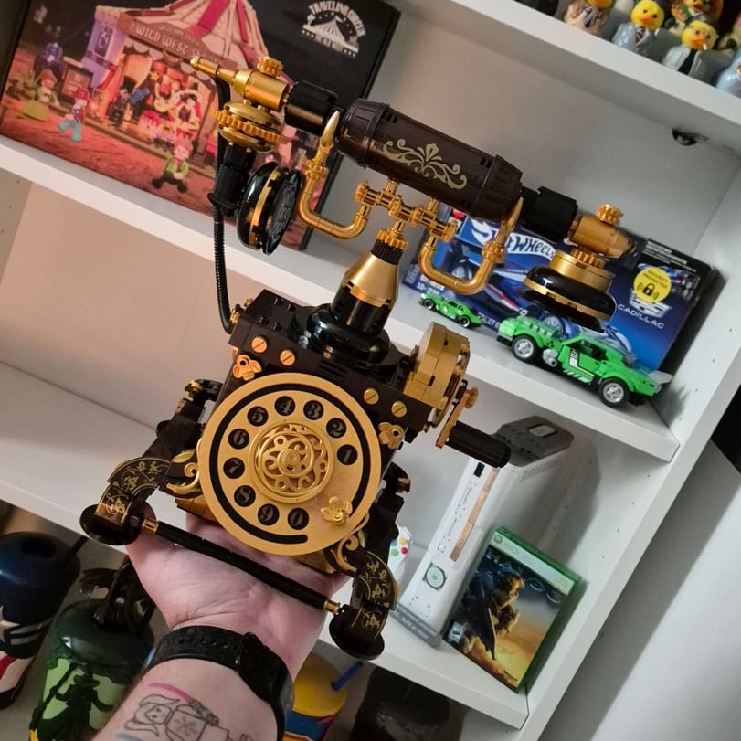 By: Bastian on 19 FebruaryThe Pantasy Retro Phone 85018 is a truly well-designed set for anyone who appreciates nostalgic aesthetics and clever building techniques. The assembly process is enjoyable and relaxing — perfect for a calm building session. The pieces are high quality and fit together precisely, resulting in a sturdy and detailed model. The most impressive feature is the fully functional rotary dial. It actually turns just like the classic telephones from the past, creating an authentic retro experience. The handset is also thoughtfully designed: when placed on the cradle, it is pushed down by its own weight, just like on the original phones from earlier decades. These mechanical details make the set stand out and elevate it beyond a simple display model. Visually, the finished phone is a real eye-catcher and works perfectly as decoration for an office, living room, or desk. Overall, the Pantasy Retro Phone 85018 impresses with its build quality, functionality, and nostalgic charm. A highly recommended set for collectors, hobby builders, and retro enthusiasts.