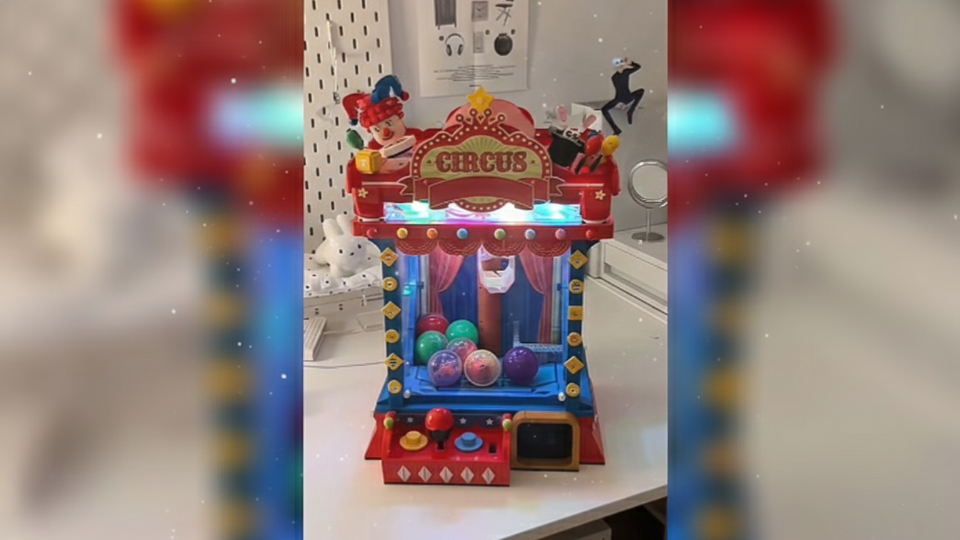 - Fully functional claw machine with lights, music, and joystick controls