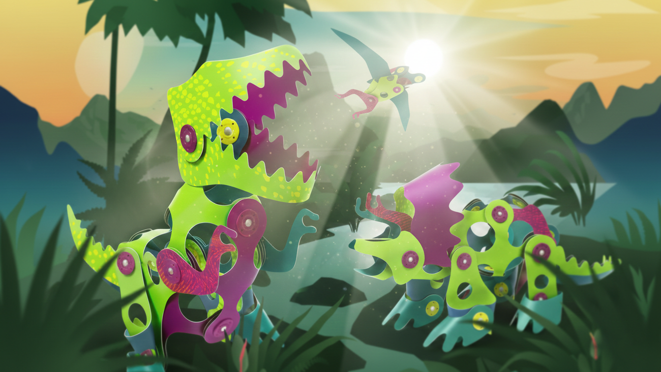 Kids can build classic dinosaurs or invent strange new creatures with extra legs, giant mouths, or very questionable balance!
