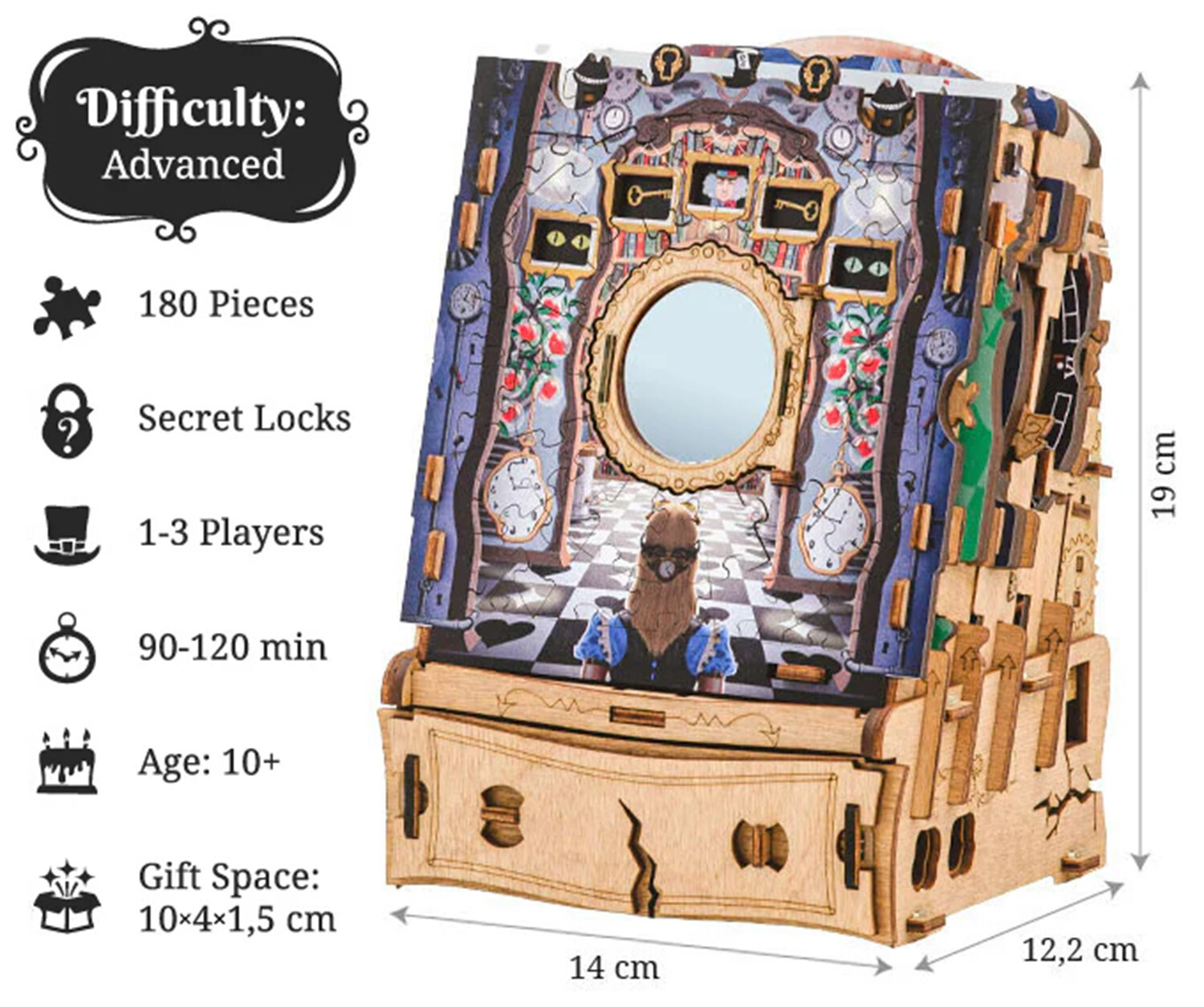 The Cluepuzzle Wonderbox of Alice Jigsaw Puzzle Box is not a box you open. It's a mystery you solve!