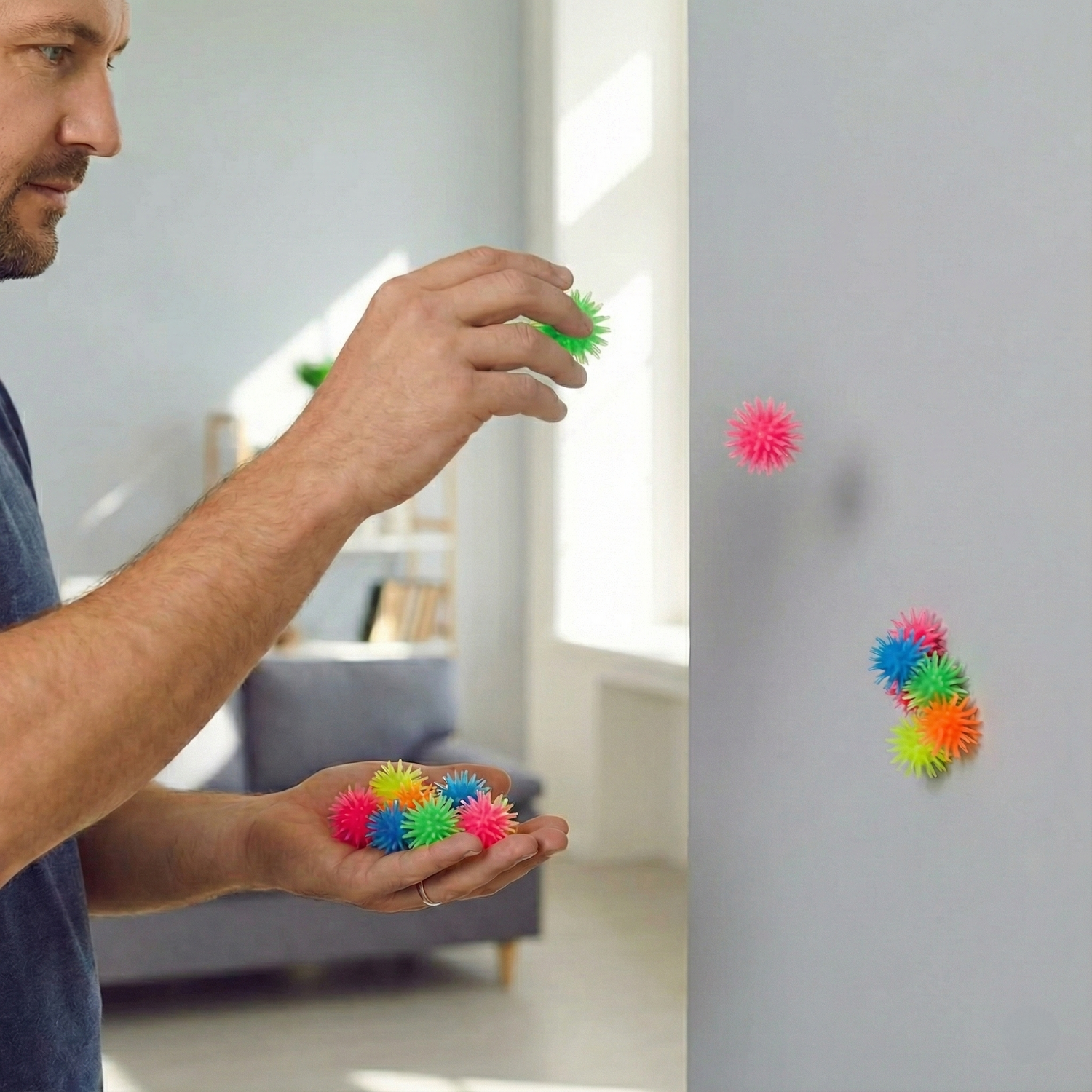 Squish them into a squidgy ball in your hands to feel their soft and sticky spikes. They’ll add a fun burst of colour to any play room!