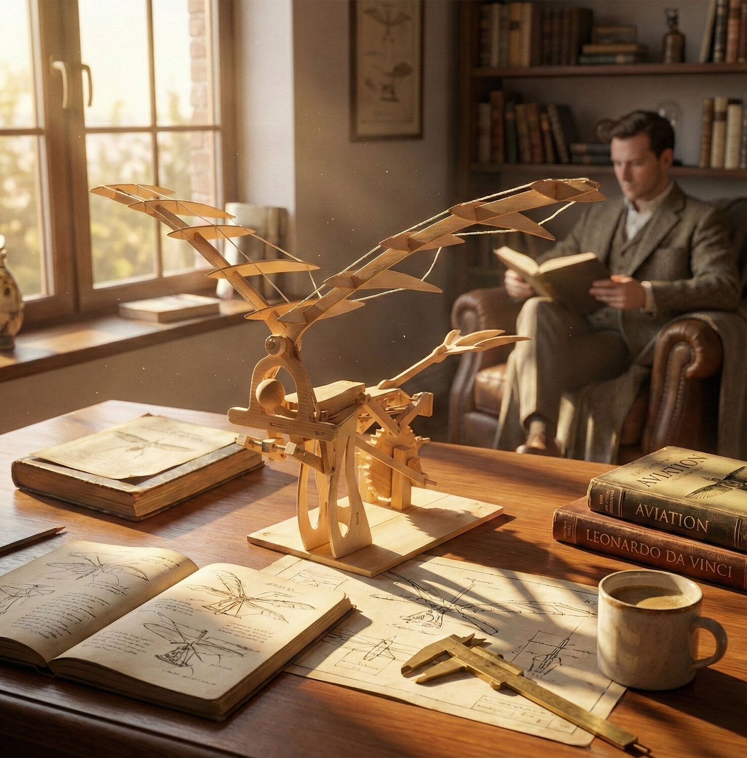 Put your skills to the test with this build-it-yourself working recreation of Leonardo Da Vinci's fifteenth century Ornithopter, inspired by the many drawings of flying machines that he sketched!