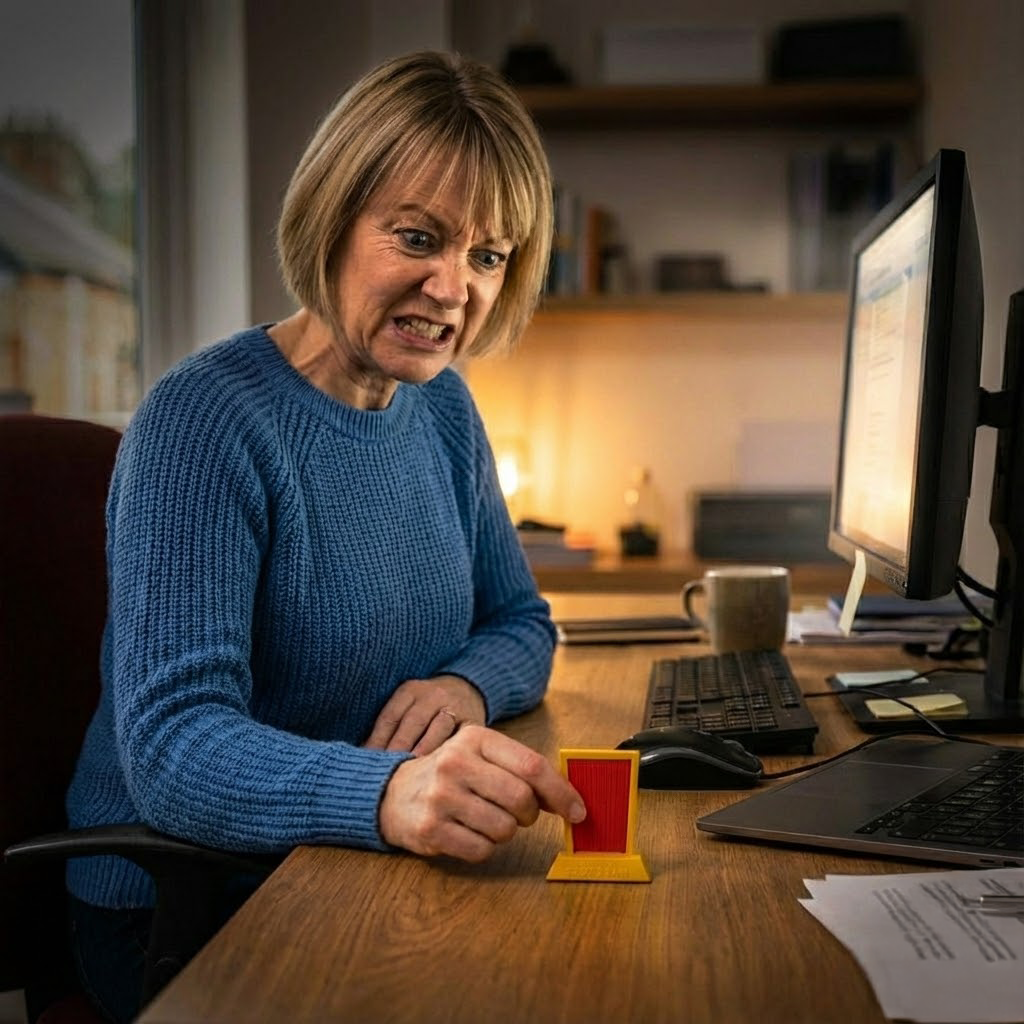 It's the perfect desktop accessory for anyone working in an open-plan environment with no real doors to absorb their aggression.