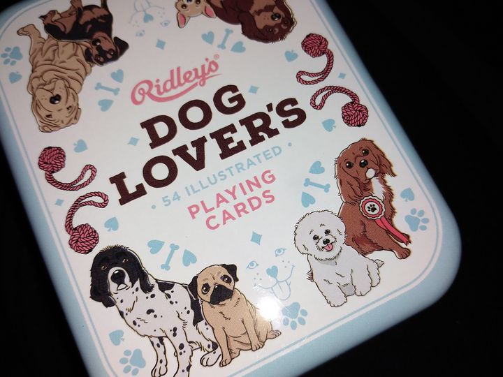 This Dog Lovers Playing Cards features 54 beautiful hand illustrated images of man's best friend packed in a "paw-some" illustrated metal travel tin.