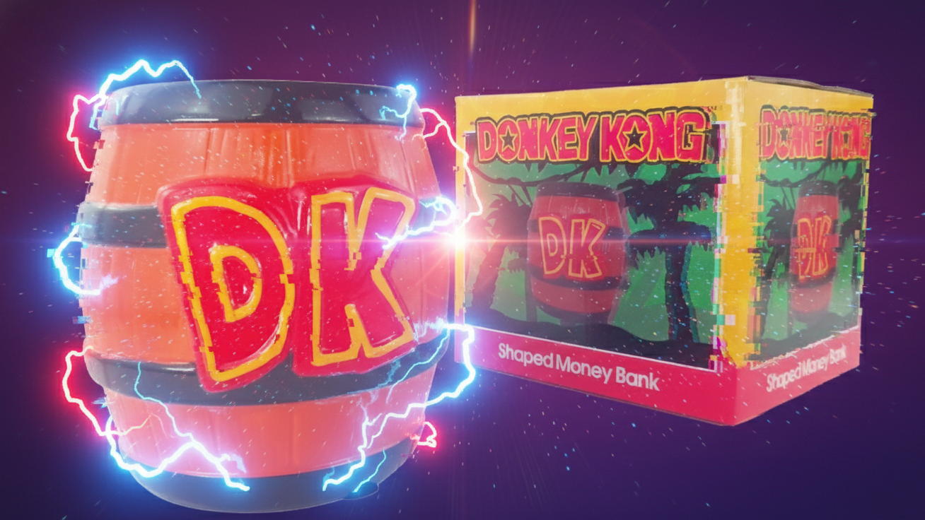 Bring a piece of gaming history into your home and start saving with the ceramic Donkey Kong Barrel Shaped Money Bank today!