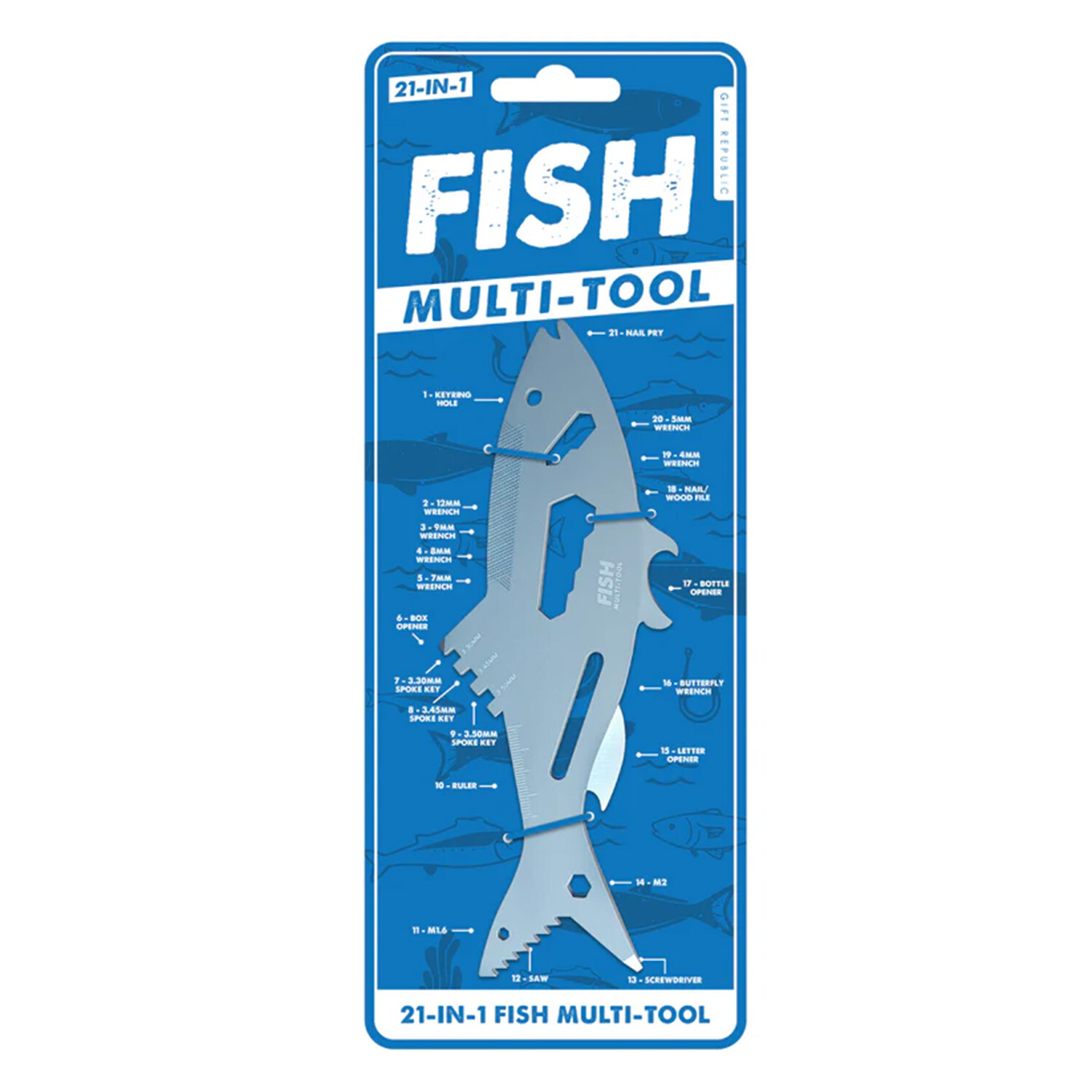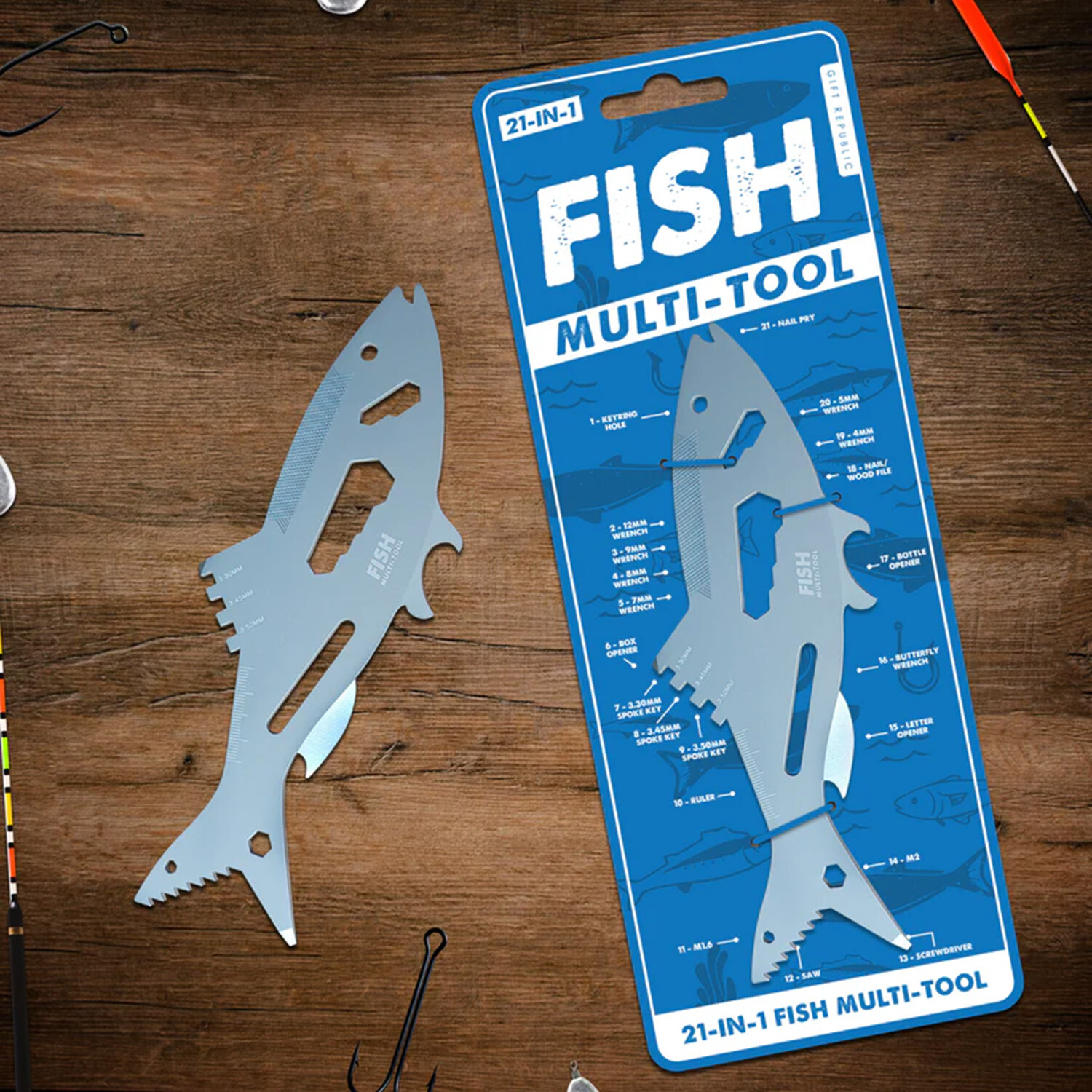 Shaped like a classic fish, this clever 21 in 1 gadget proves that practical tools do not have to look boring.