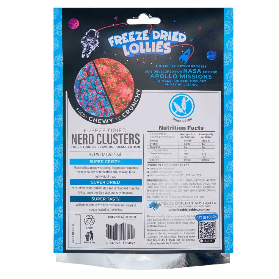 - Crunch overload: When our Nerds Gummy Clusters go through freeze-drying, they don't just dry out, they transform! They puff up to two or three times their original size, giving you a super crisp bite that's feather-light and bursting with flavour.