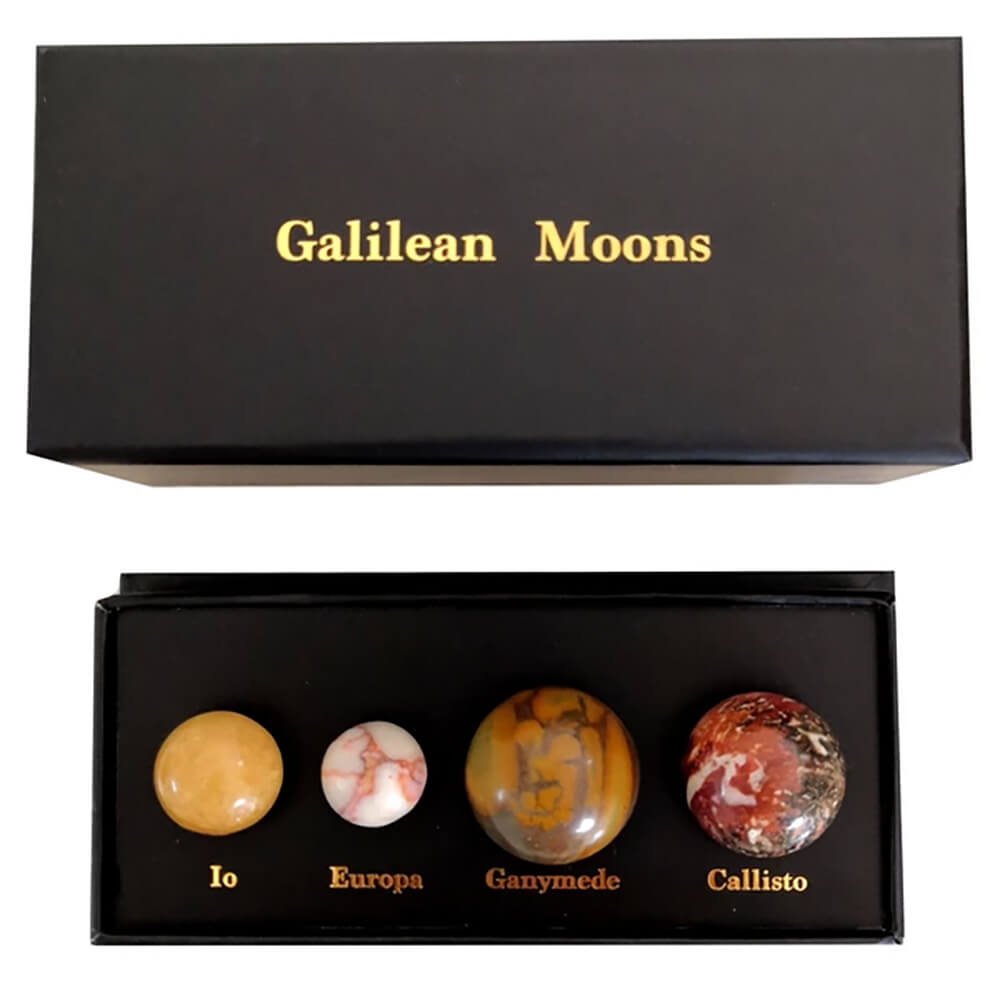 Coming ready to display in a heavy-duty cardstock box, your polished gemstones are ratio-sized based on the real Galilean Moons.