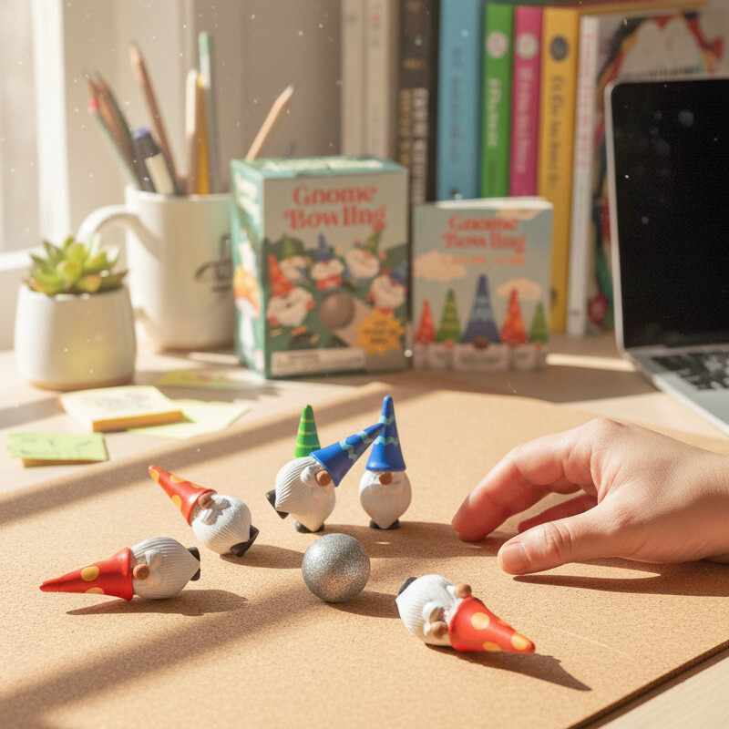 Roll into fun and bring some gnome-sized action to your desk with the Gnome Bowling Mini Kit today!