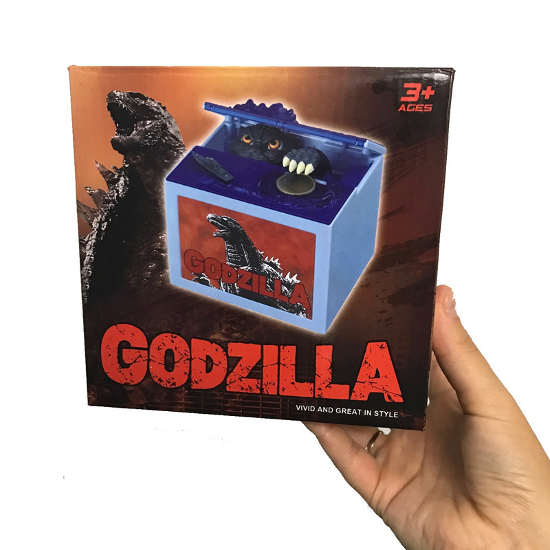 Watch as the red LED's light up the inside of your money bank, and Godzilla rises up to snatch your coin with his claw.