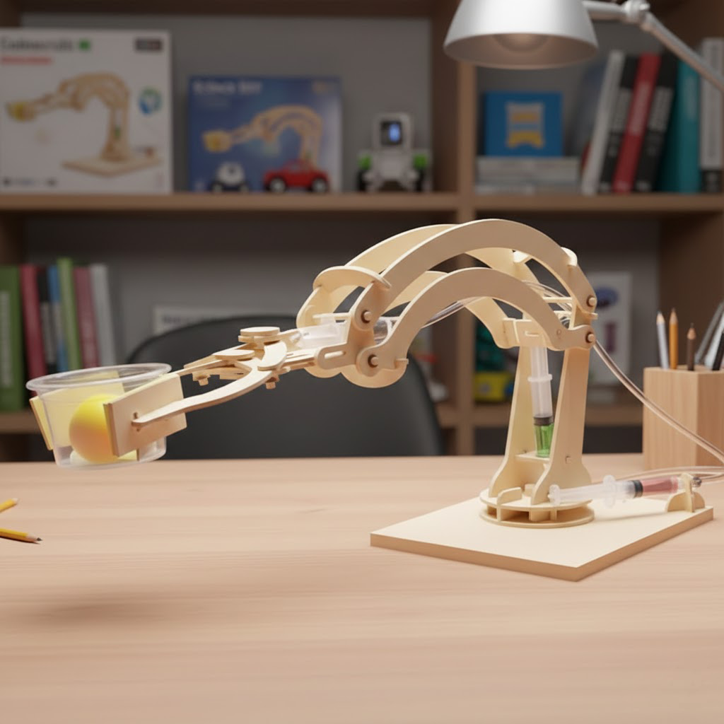 This 3D model kit is perfect for budding engineers! Now you can build your very own working hydraulic arm in about an hour, made from sturdy die-cut plywood with an MDF base!