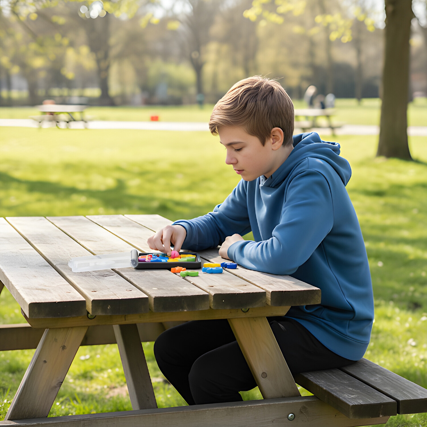 Compact and designed with a lid, the game board makes IQ Noodles perfect to take on trips, to the office, or just to enjoy at the kitchen table.