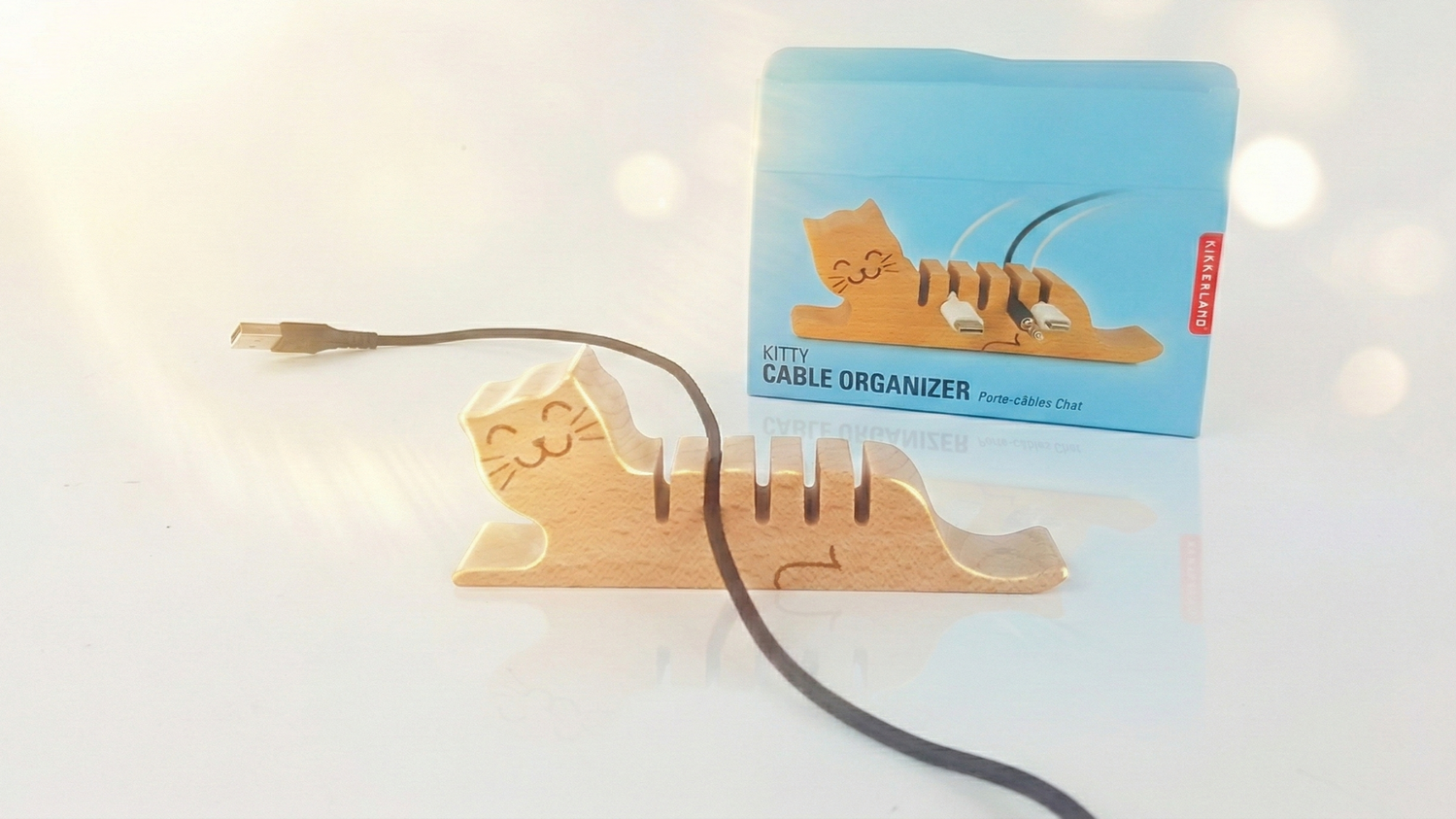 Made from smooth beechwood, this feline friend has five handy slots to hold your cables in place, keeping them neat and ready to grab when you need them.