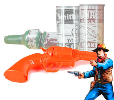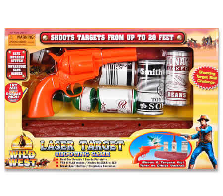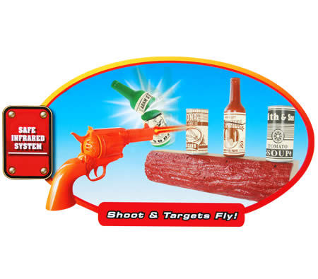 Set comes complete with an electronic log, four bottle and can targets, a six-shooter style infrared pistol and an instruction manual.