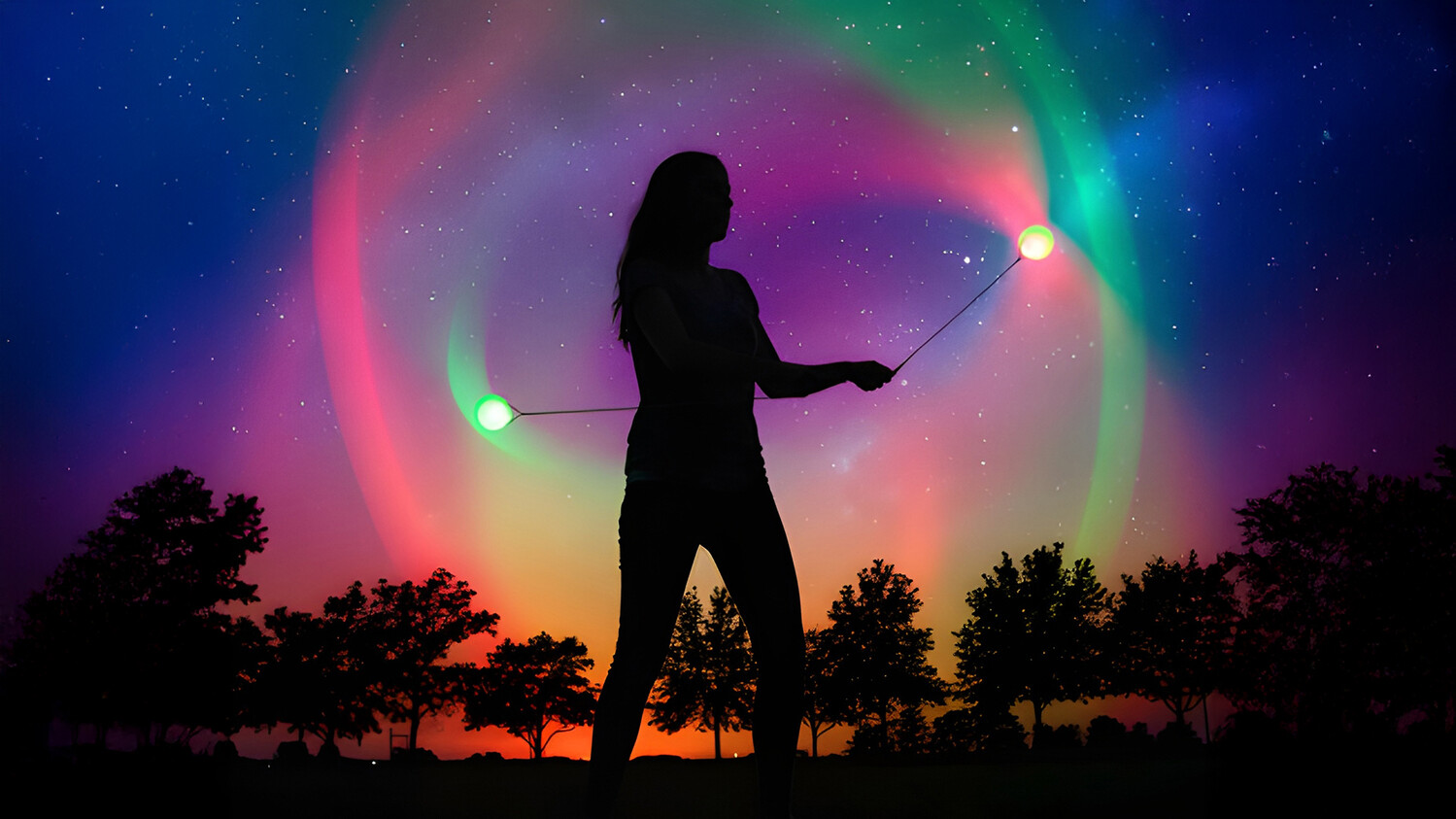 The dancer swings the Poi through a variety of rhythmical movements to create geometric patterns in the air!