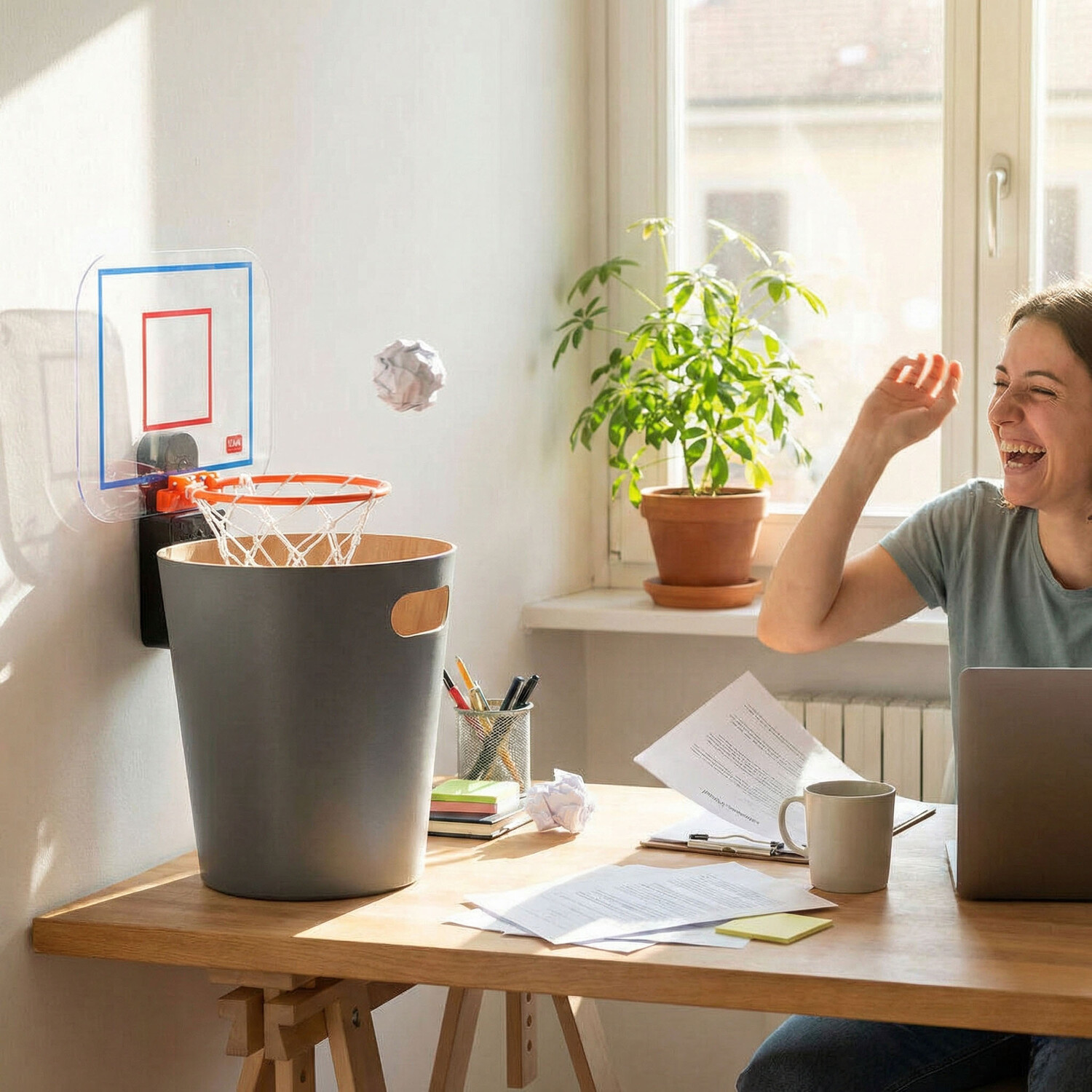 Become a trash ball champ as you challenge your colleagues to a friendly game of basketball in the office!