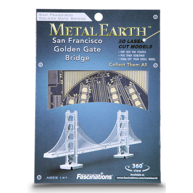 This fantastic kit allows you to build your very own Golden Gate Bridge. Your model starts out as a flat, laser-etched metal sheet. Follow along with the illustrated instructions to pop out the pieces, bend the tabs, and connect the points to turn the pieces into an amazing 3D model of the Golden Gate Bridge.