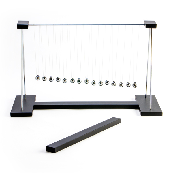 This extraordinary desktop toy is a beautiful display of physics, similar in design to that of a Newton's Cradle.