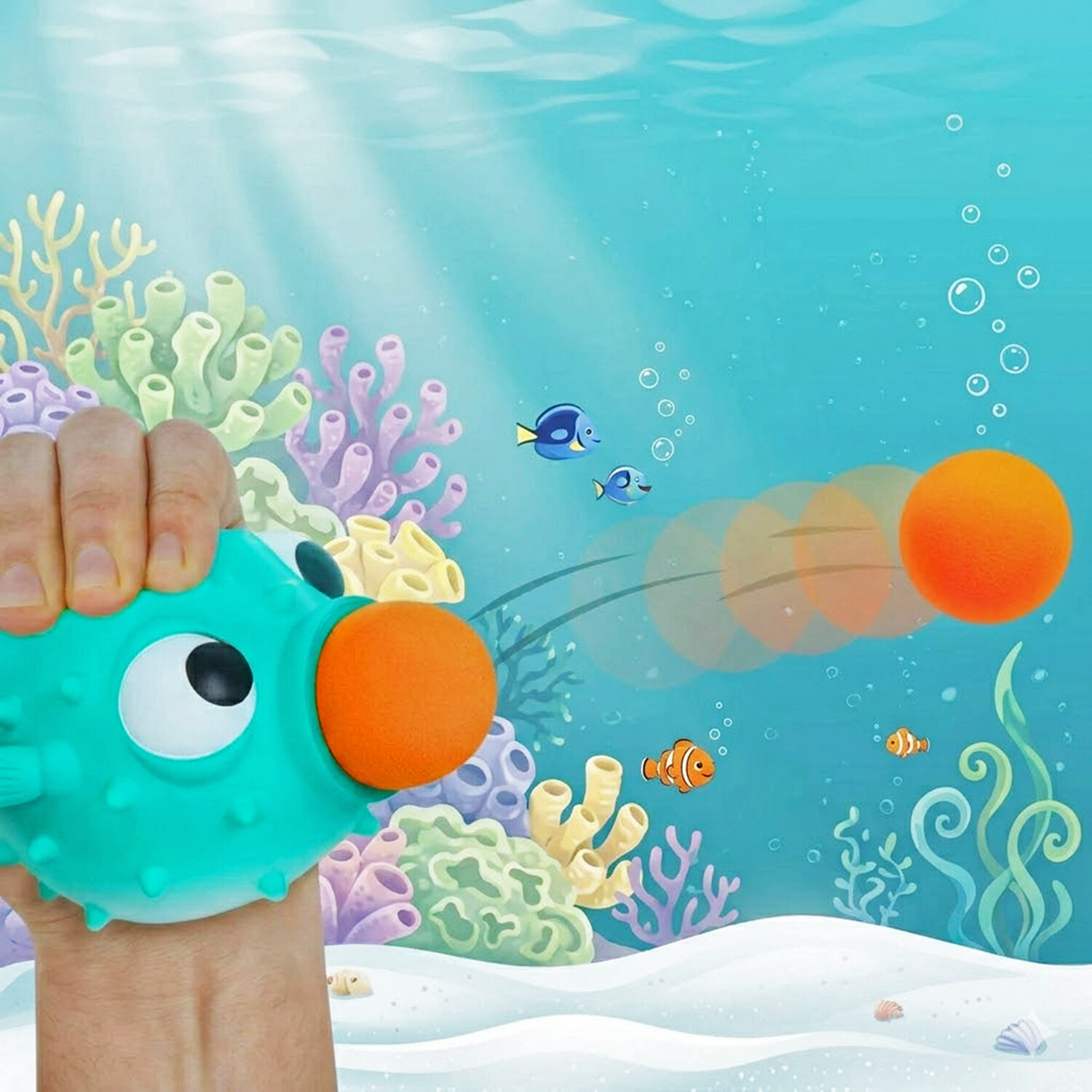 The bright colours and fish shape make it fun before the first shot even launches, and the air-powered action keeps everyone coming back for one more go.
