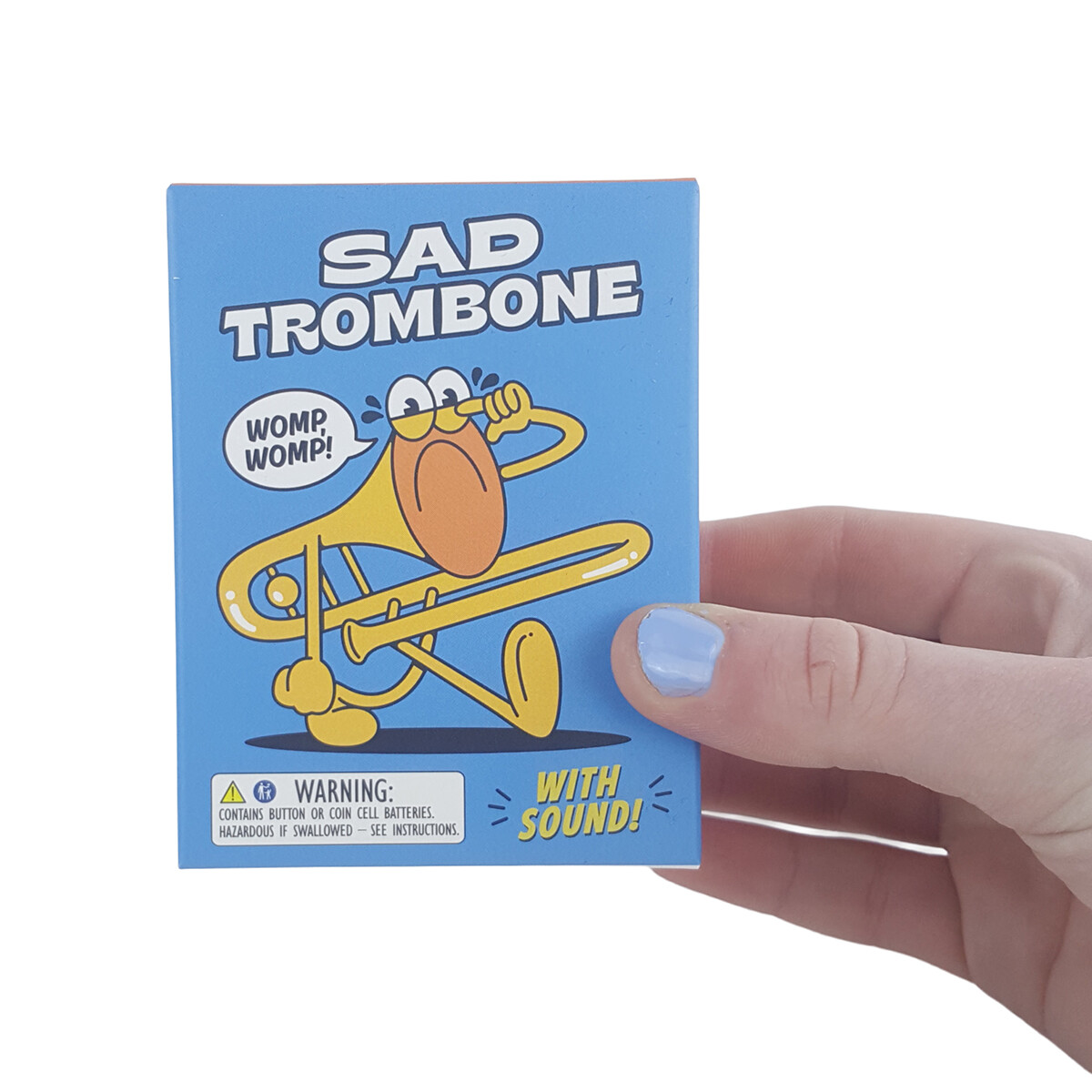Also included is a 32-page mini book with a deep dive into the history of the sad trombone and the fine art of musical misfortune.
