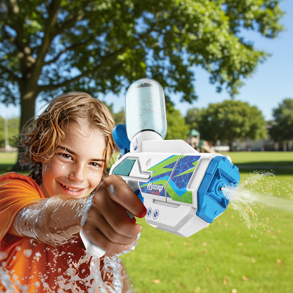 Just pull the trigger and unleash rapid bursts of water up to 5 metres away, a surefire way to keep your opponents guessing!