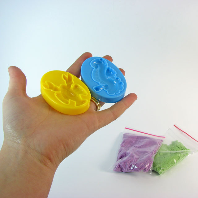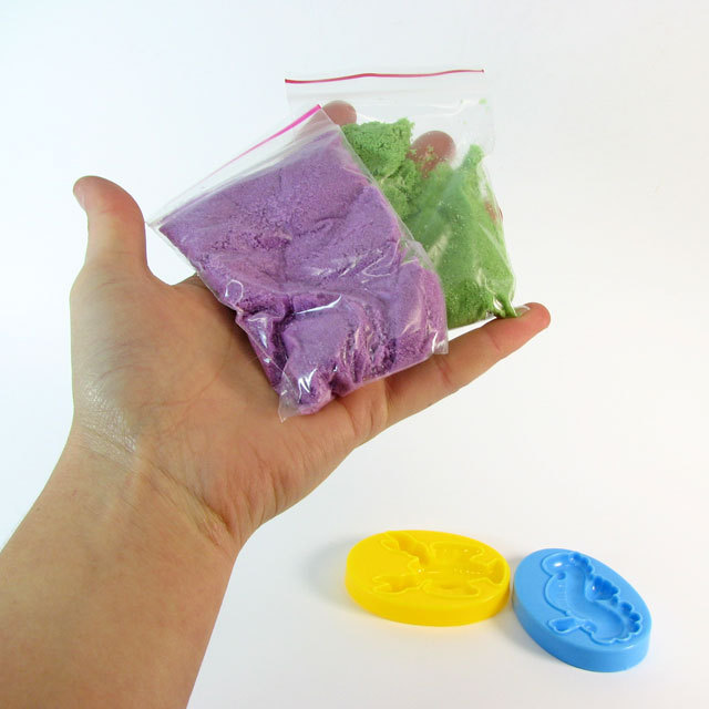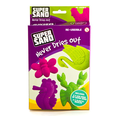 Your pack includes: 2 x 60g mini bags of super sand (randomly selected colours) and 2 x plastic animal moulds (also selected at random).