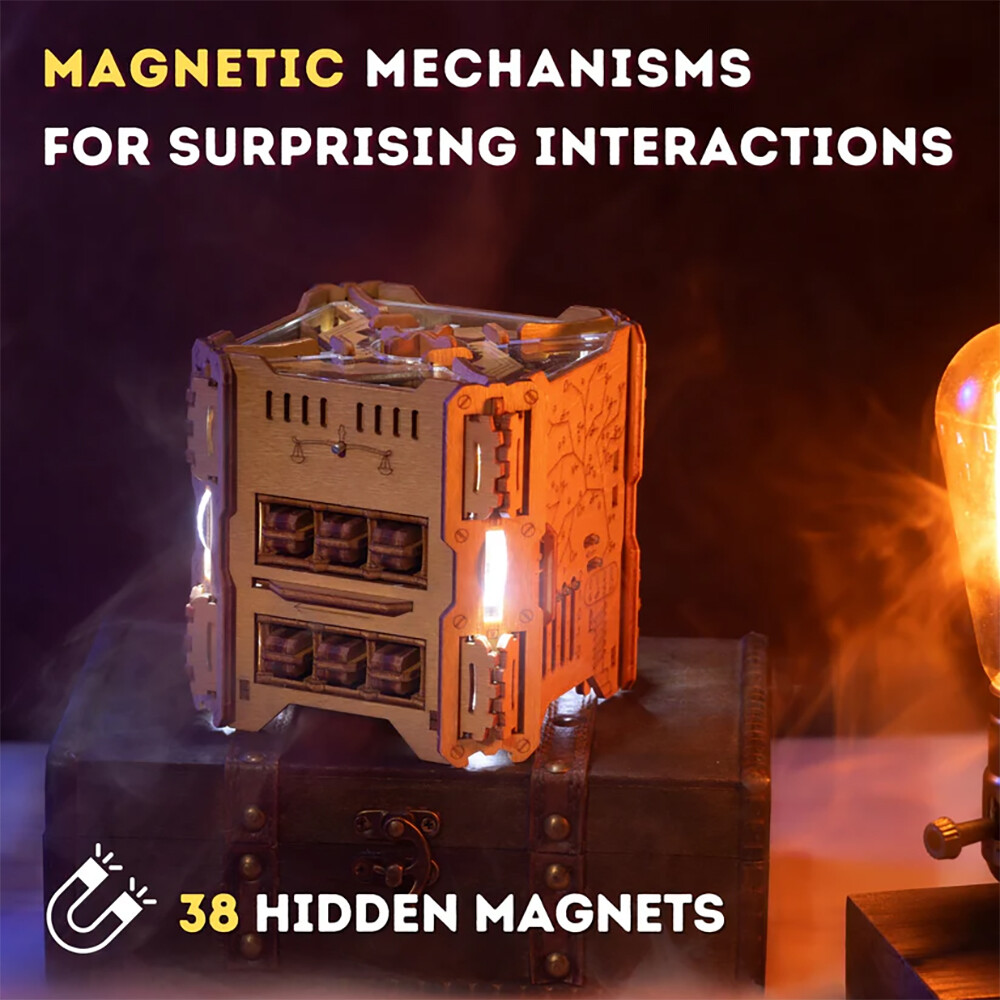 Each layer of the puzzle hides another clue, with 38 hidden magnets creating fascinating magnetic interactions as you work to solve it.