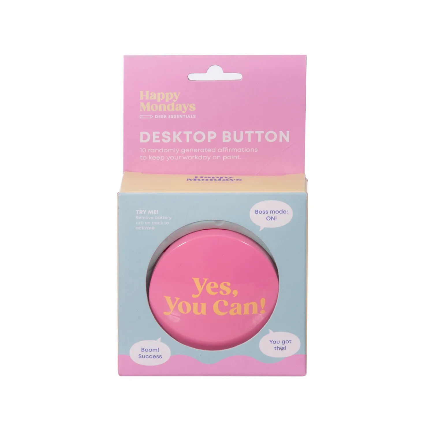 The Yes You Can Button is your tiny desk cheer squad with zero judgement and maximum hype!