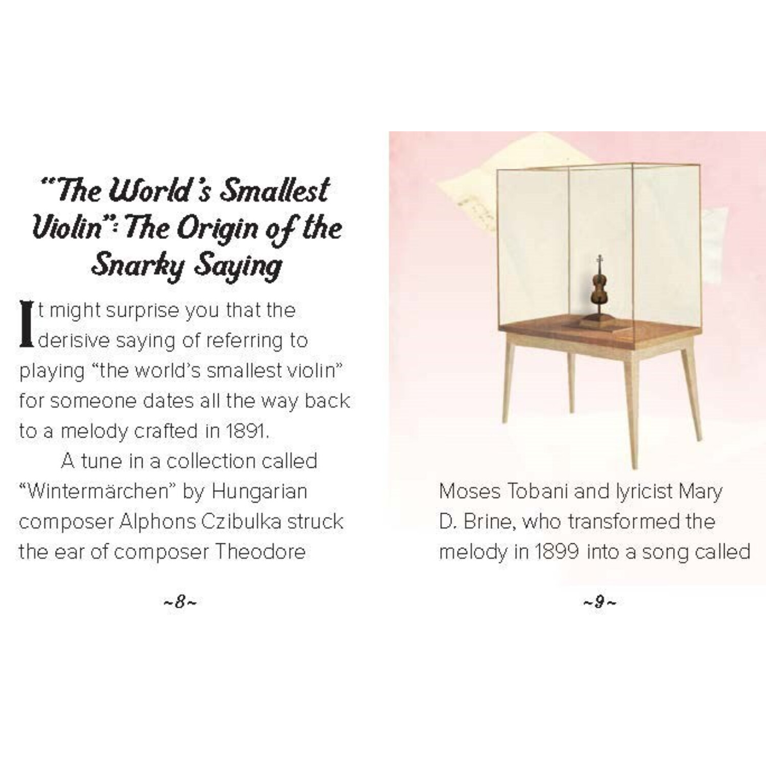 Plus, the 32-page illustrated mini book will teach you everything you need to know about the origins of the "tiniest violin" joke.