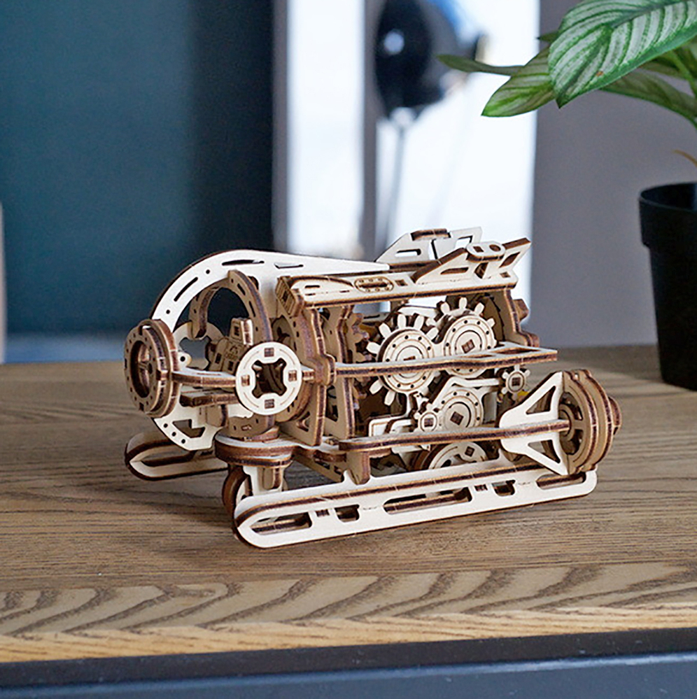 Bring the magic of undersea exploration to life with the UGears Mini Steampunk Submarine Model Kit.