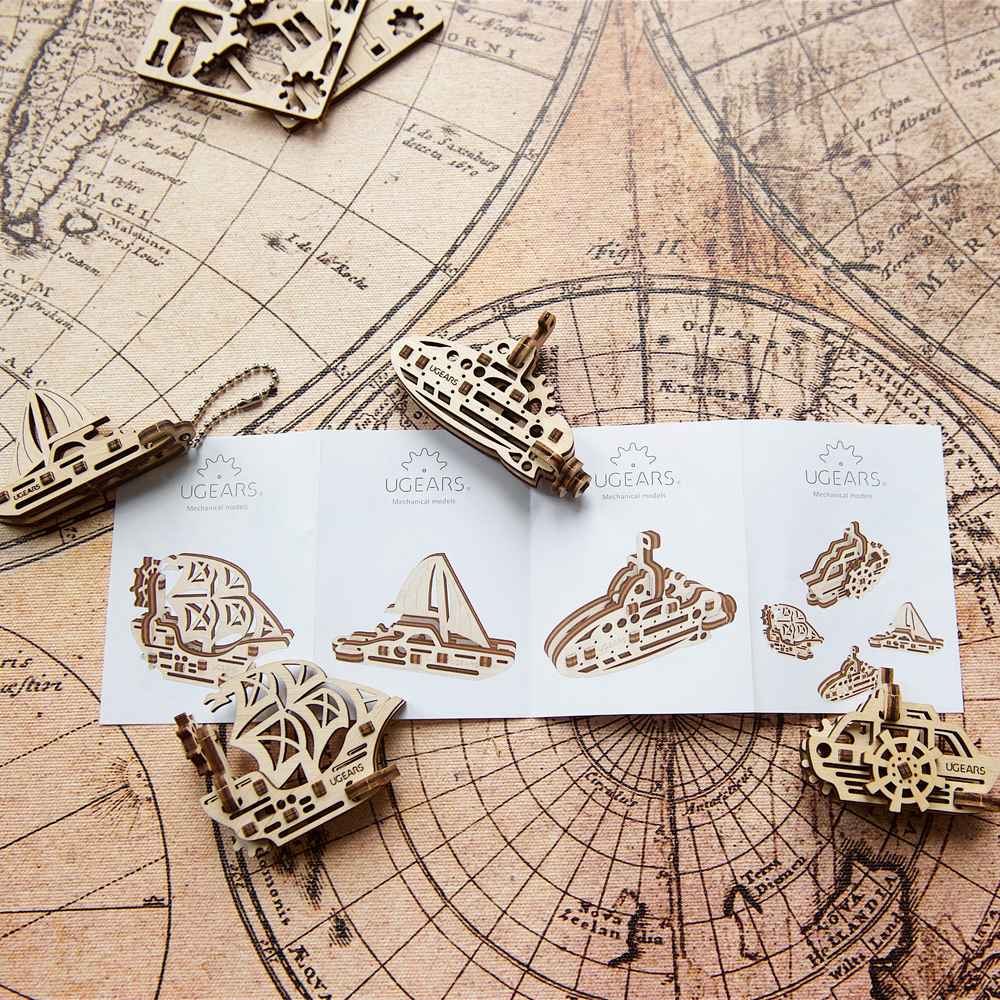 The UGears Ships UFidgets set is a delightful collection of four miniature ship models, each with its own mechanical charm!