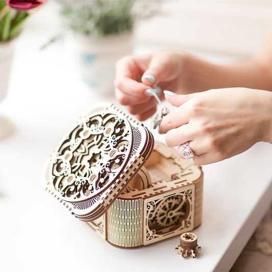 Perfect for jewellery, notes and other important trinkets, this Ugears project will keep your secrets safe inside. But, you’ll have to solve the secrets of the puzzle first to open the box!