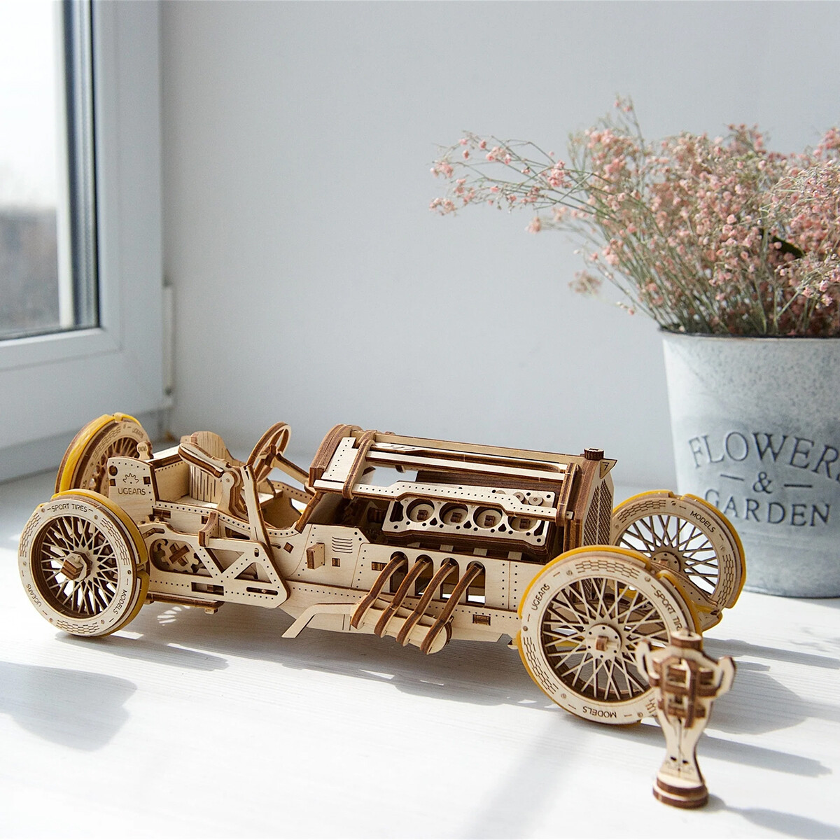 Buy UGears U-9 Grand Prix Car Model & and you'll receive a UGears Mystery Wooden Fidget Kit for free!