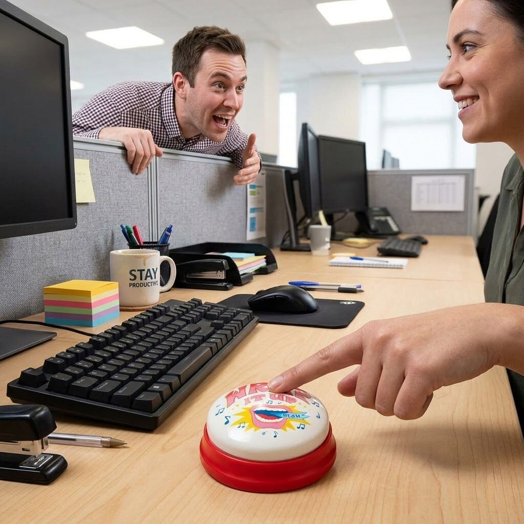 Inspired by awards show play off music, this tiny desktop hero plays dramatic wrap it up tunes the moment someone’s story takes a scenic detour.