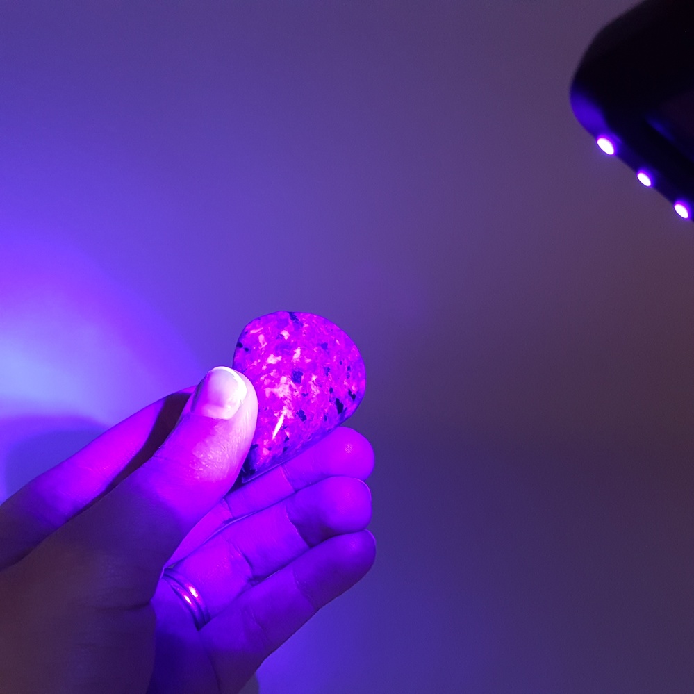 It really is extraordinary, and when exposed to UV light, the clear speckles on your Yooperlite show up bright orange due to the presence of fluroescent sodalite!